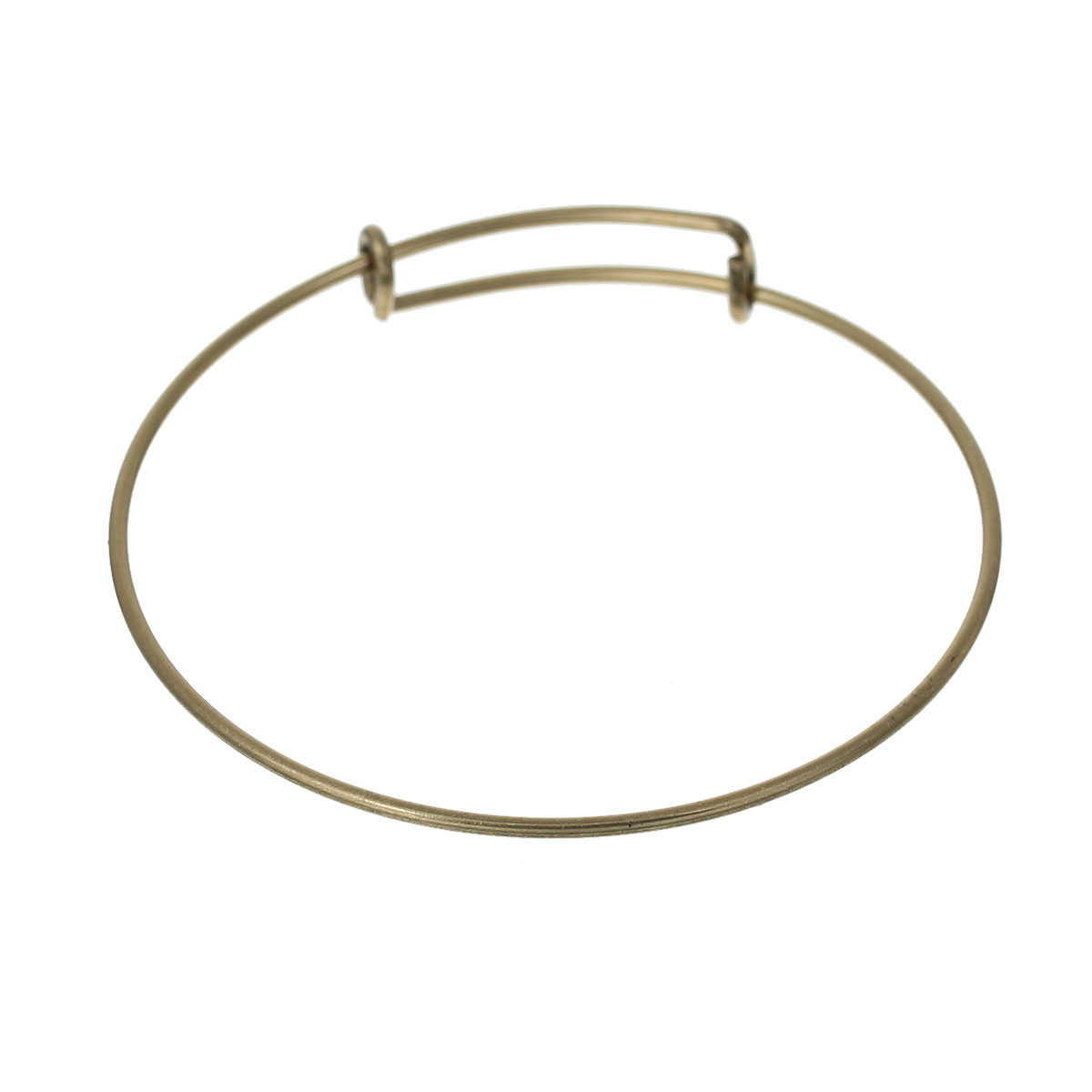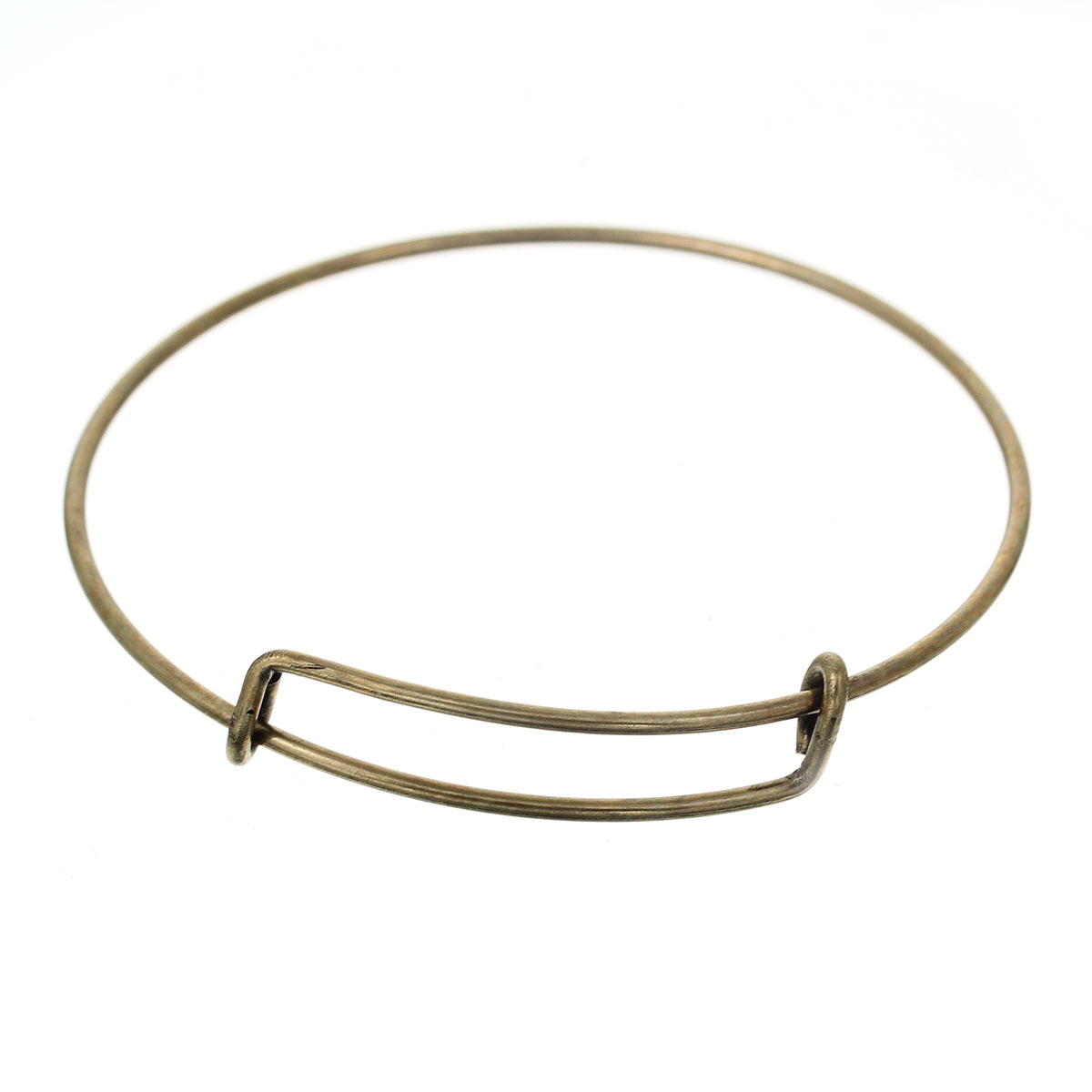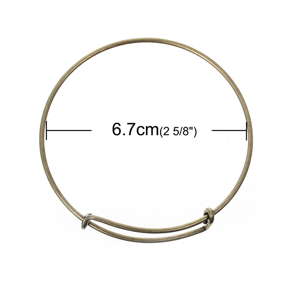 Brass Expandable Bangle Bracelet, Double Bar, Round Antique Bronze Adjustable From 29cm(11 3/8") - 23cm(9") long, 5 PCs